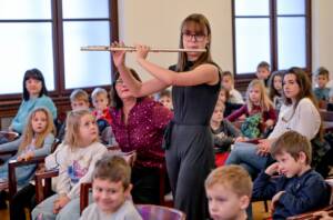Kako bi se što bolje snašli u svijetu klasične glazbe, naši su mališani pratili program u obliku edukativne prezentacije, učeći o pažljivom slušanju i bontonu u koncertnoj dvorani. Raznolik program, koji je spajao klasičnu glazbu s poznatim dječjim i božićnim hitovima, potaknuo je mališane na spontano sudjelovanje – dvoranom se orila pjesma svaki put kada bi prepoznali omiljenu melodiju. No, najveće oduševljenje izazvale su dvije točke programa u kojima su se i sami mališani našli u ulogama izvođača, aktivno muzicirajući uz klavirsku podršku učenika Petra Magaša koji je ovaj nastup pripremio u okviru nastave harmonije. Iako je koncert trajao nešto dulje od predviđenog, bila je to dragocjena prilika da u veselom blagdanskom duhu vježbamo strpljenje i pružimo podršku mladim glazbenicima. Veliko hvala našoj maloj publici na njihovom velikom strpljenju, kao i nastavnici Miji Mihalić, mag. mus., koja je mjehurićima od sapunice dodatno razveselila mališane, a da blagdansko darivanje bude potpuno, na kraju koncerta predškolce su dočekali i prigodni pokloni.