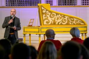 Kratku prezentaciju obavljene restauracije održat će Zlatko Pavlinić, ugoditelj i restaurator klavira, orgulja i čembala, koji je ujedno i obnovio ovaj povijesni instrument. Pavlinić je ključna osoba brojnih hrvatskih glazbenih festivala, posebice onih na kojima se izvodi repertoar na čembalima, te nezaobilazan suradnik Varaždinskih baroknih večeri.