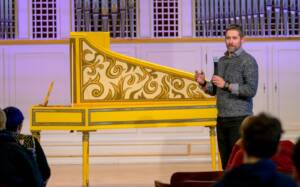 Kratku prezentaciju obavljene restauracije održat će Zlatko Pavlinić, ugoditelj i restaurator klavira, orgulja i čembala, koji je ujedno i obnovio ovaj povijesni instrument. Pavlinić je ključna osoba brojnih hrvatskih glazbenih festivala, posebice onih na kojima se izvodi repertoar na čembalima, te nezaobilazan suradnik Varaždinskih baroknih večeri.